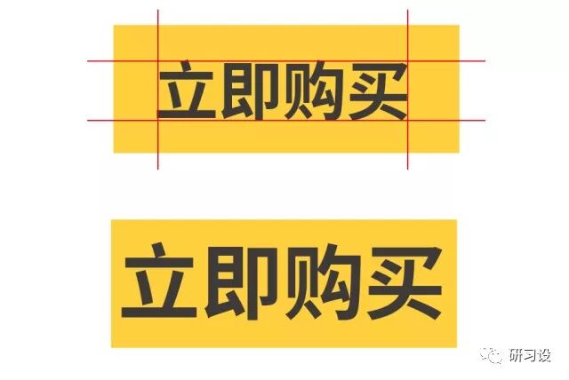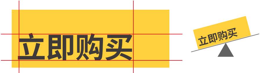 加入文字后,四周的留白并不统一,给人左重右轻的心理感受,视线在中心与文字之间来回移动,产生了动感与紧张的印象,对于一个在小比例下显示的购买按钮来说,这显然不是我们想要的印象。