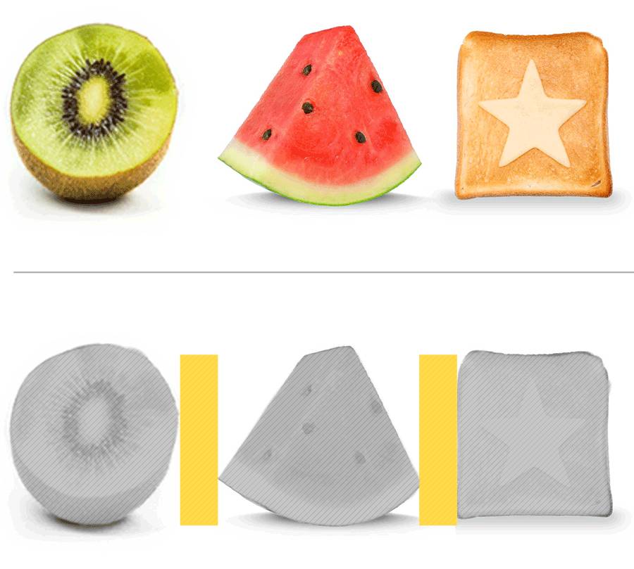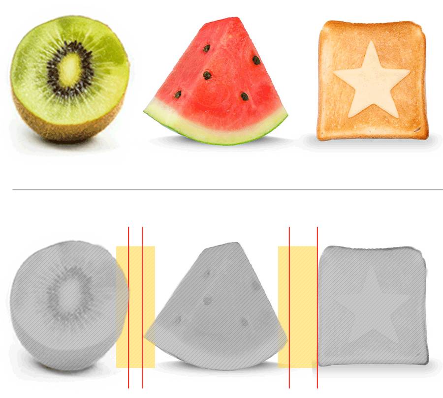 上图虽然在面积上统一了三个元素的留白大小,但在视觉上看,它们的间距留白并不是一样大的。这是视错觉的缘故。