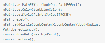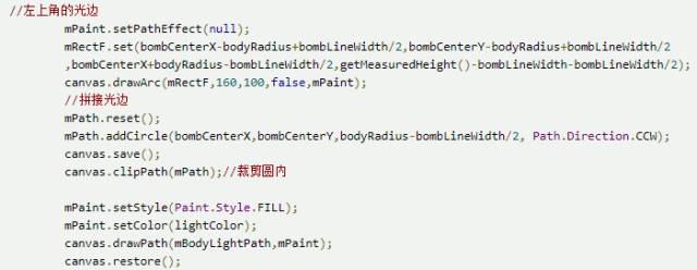 可以发现身体其实也就是一个圆,然后加上左上角的高光。那么高光是怎么实现的呢?三个点的高光,很简单的,用Path画弧,然后使用DashPathEffect效果,完美。 那么另一个高光呢?看图。