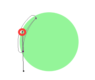 可以看到就是条圆弧和一个路径合成的,然后裁剪保持圆内。路径的形成就是取弧度的两个点,然后用贝塞尔曲线进行绘制,控制点位于弧度中分线中(下图红点)。
