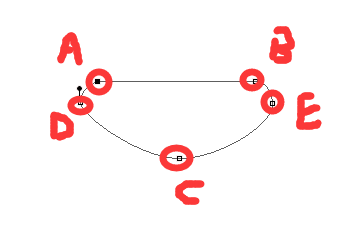第二部分是ab两点往中间靠拢,直到ab重合,同时ab两点往上移,de的控制点同时拉长,直到形成一个椭圆。