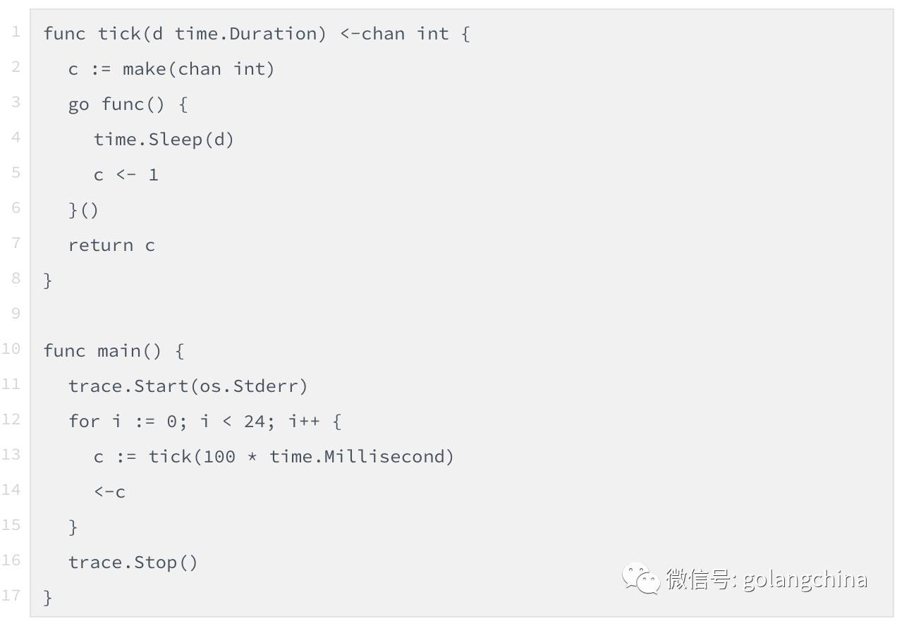 直接运行 go 代码的效果并不好,推荐生成 trace,需在执行的代码上前后加上: