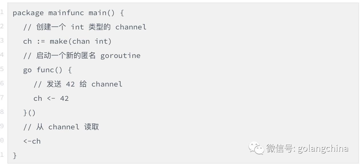 无论写什么语言,都会从 hello world开始,代码非常简单 - 单 channel,单 goroutine,一次写,一次读。