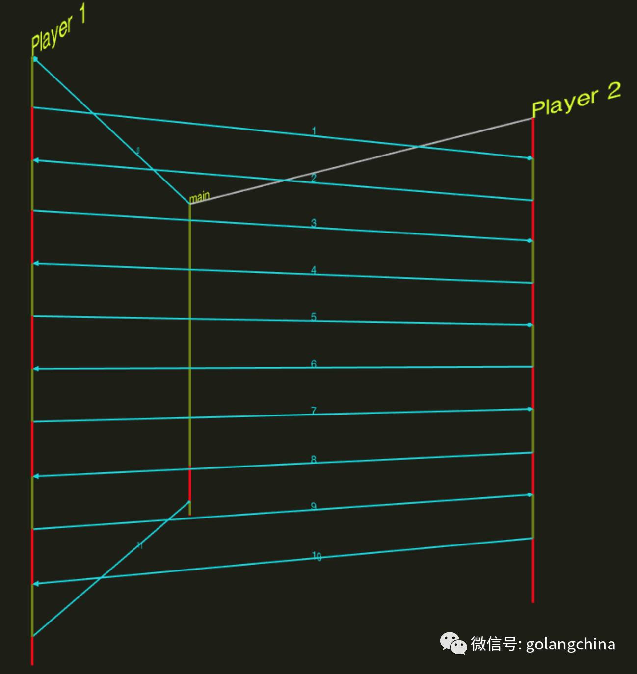 效果(复制链接http://talks.bingohuang.com/2017/go-concurrency-visualize/pingpong36.html 在浏览器中打开)