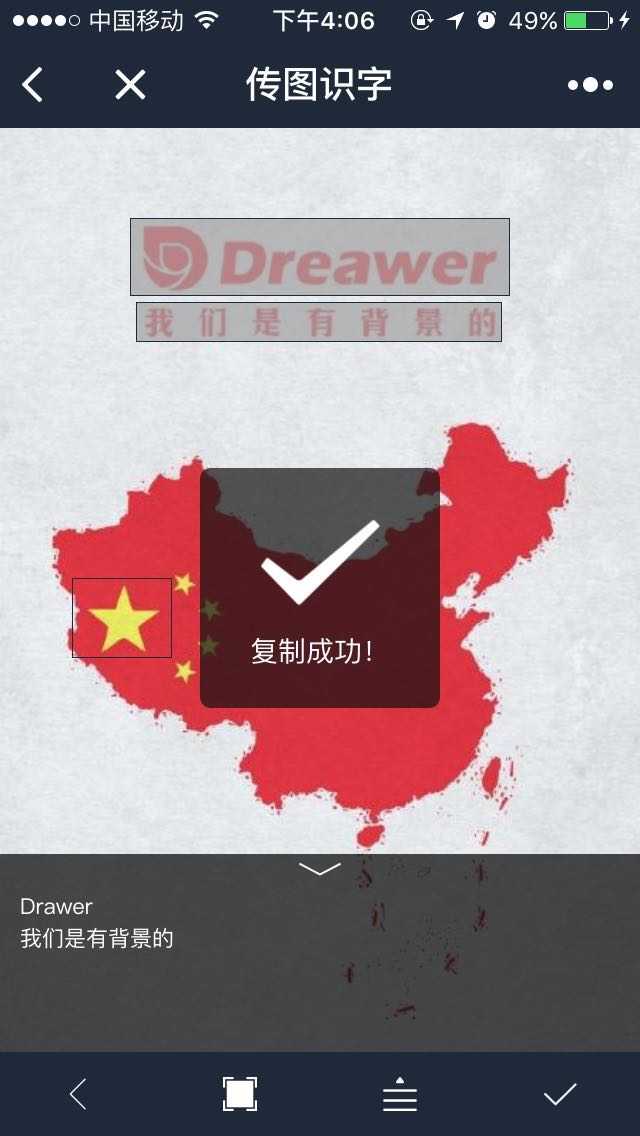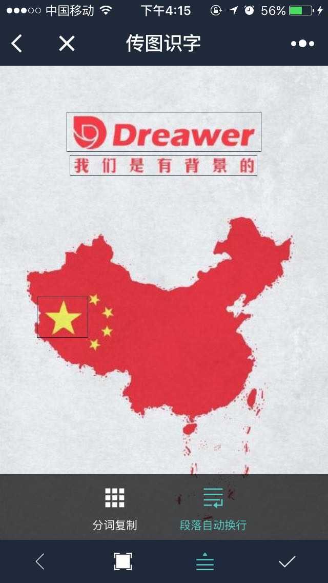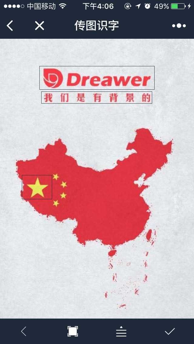 然后你会发现图片上有字的部分都会被框选出来,在下方阴影的地方会显示识别的字。