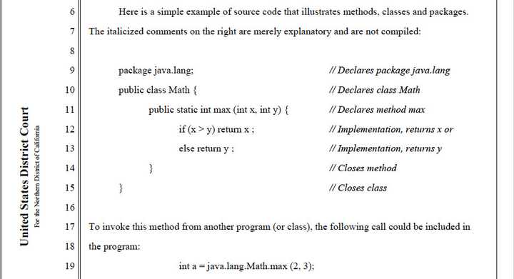△Alsup 法官 2012 年在甲骨文诉谷歌案意见中的代码样例