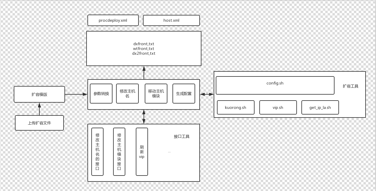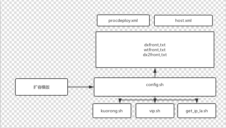 问题转换为维护这六个文件,一般情况下,后端是不需要动的,于是变成了维护这三个文件,先来梳理下现有的扩容脚本:
