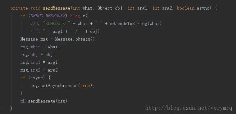 这个方法把传过来的参数包装成ActivityClientRecord ,通过sendMessage传出去,我们来看看这个sendMessage。