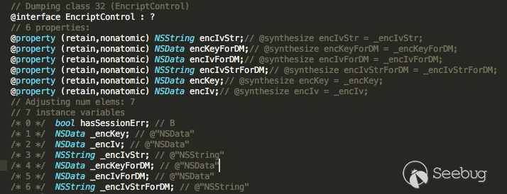 暂时返回 jtool -d objc dump,注意 EncriptControl 类实例变量: