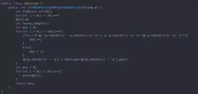 Unique Substrings In Wraparound String 参考代码
