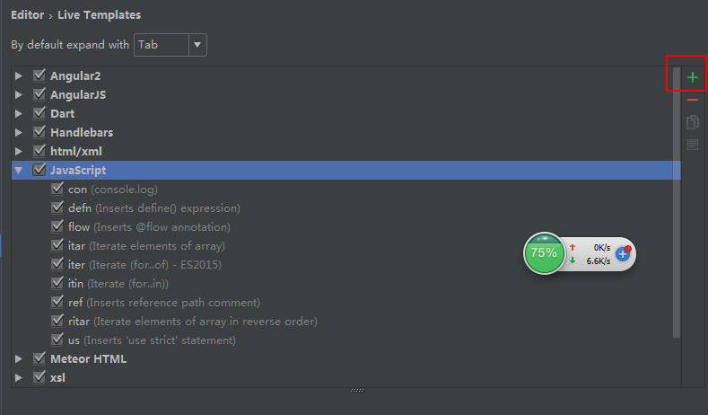 点击右侧的加号,添加一个Live Templates。