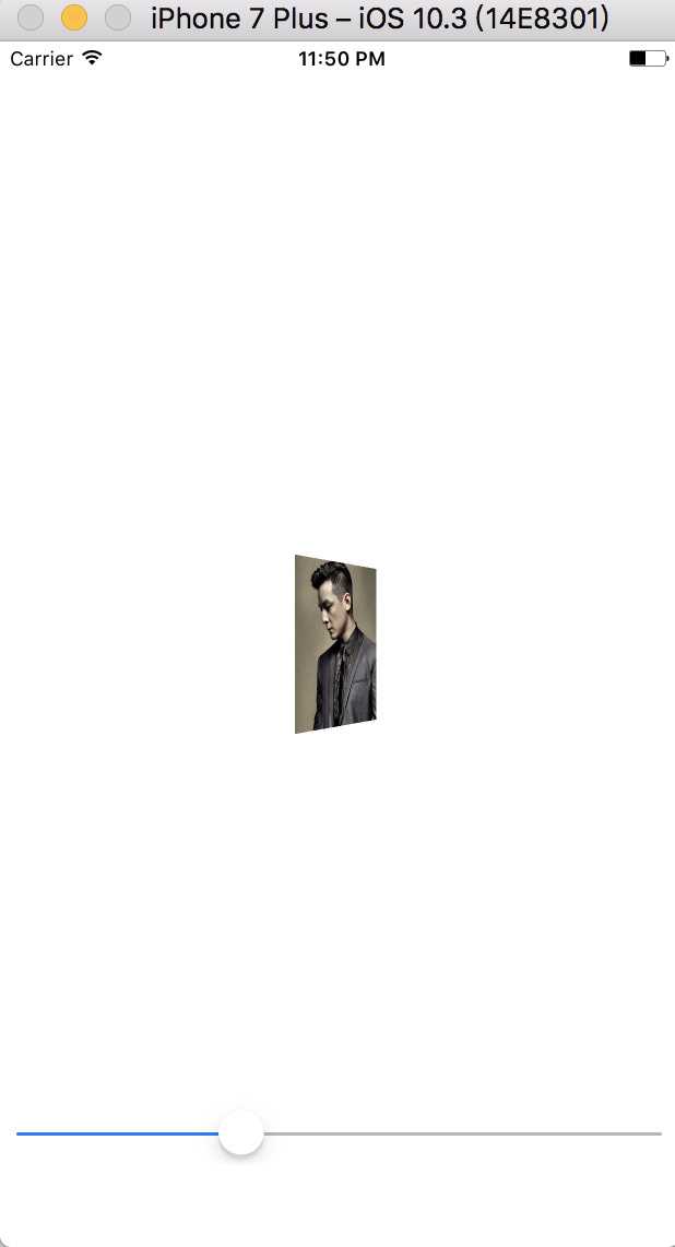 我们的目的是利用UISlider控制动画的进度,这个动画就是图片绕Y轴旋转。代码如下。