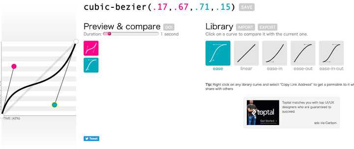 比如在http://cubic-bezier.com/,我创建了一个自定义的曲线。