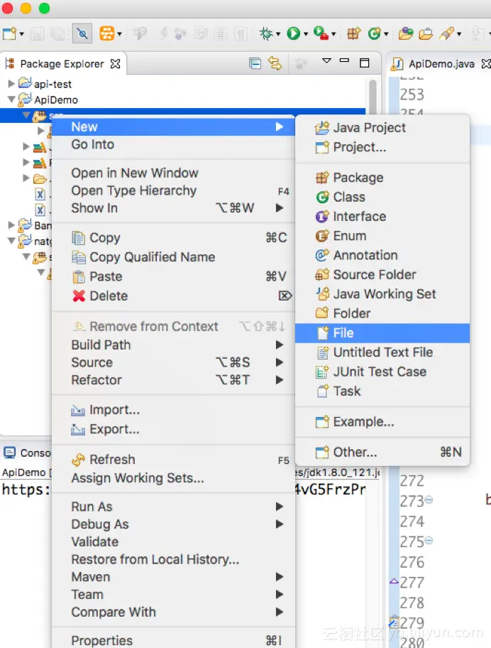 在工程的SRC中创建代码的源文件,比如ApiDemo.java