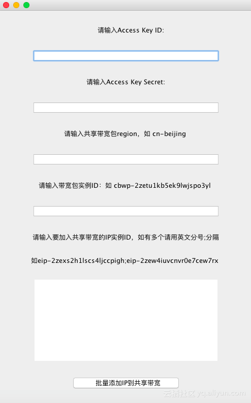 摘要: 引言 本文介绍如何通过Open Api批量添加EIP到共享带宽。文中提供源代码,文末提供可以运行的java程序附件。