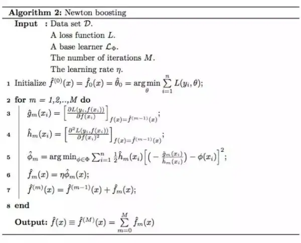 梯度提升和牛顿提升的算法如下: