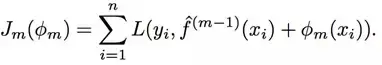 即不使用贪婪搜索,而是每次添加一个树。在第 m 次迭代时,使用下式学习新的树: