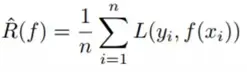 是模型的真实风险 R(f) 的经验估计。L(.) 是一个损失函数,比如平方误差损失函数(这是回归任务常用的损失函数),其它损失函数可以在这里找到:http://www.cs.cornell.edu/courses/cs4780/2017sp/lectures/lecturenote10.html。n 是样本的数量。