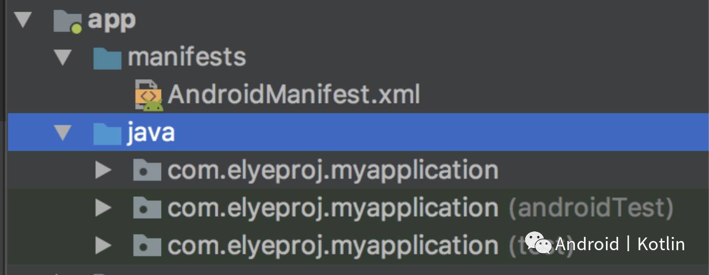 你看到了吗? 是 Java ! ! 默认的源文件夹是 Java,尽管所有的代码都是纯 Kotlin 的。