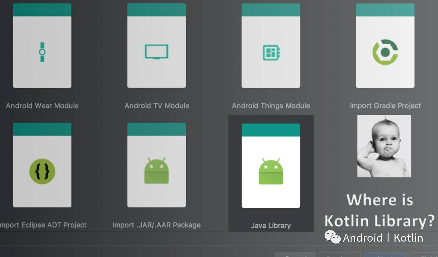 当你想要创建一个新的简单 Java 库时,Android Studio提供了这个功能。但是并没有 Kotlin 的。