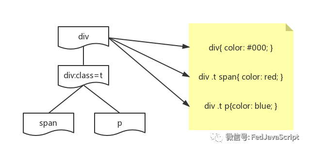 到匹配项时,计算机首先要找到 <span> 标签的父标签和祖父标签,判断他们是否满足 div .t的规则,然后再匹配 <span>是否为 p标签,此处匹配不成功,产生了三次浪费。