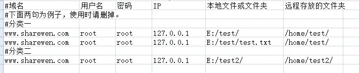 - #号为注释行,不会起任何作用,如果某一个上传任务不想执行,可以在该行最前面添加#号。