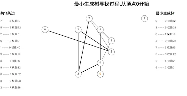 prim算法寻找最小生成树,canvas加粗显示最小生成树中的边