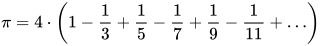 这非常接近于π = 3.14159...。莱布尼茨公式看起来不错。