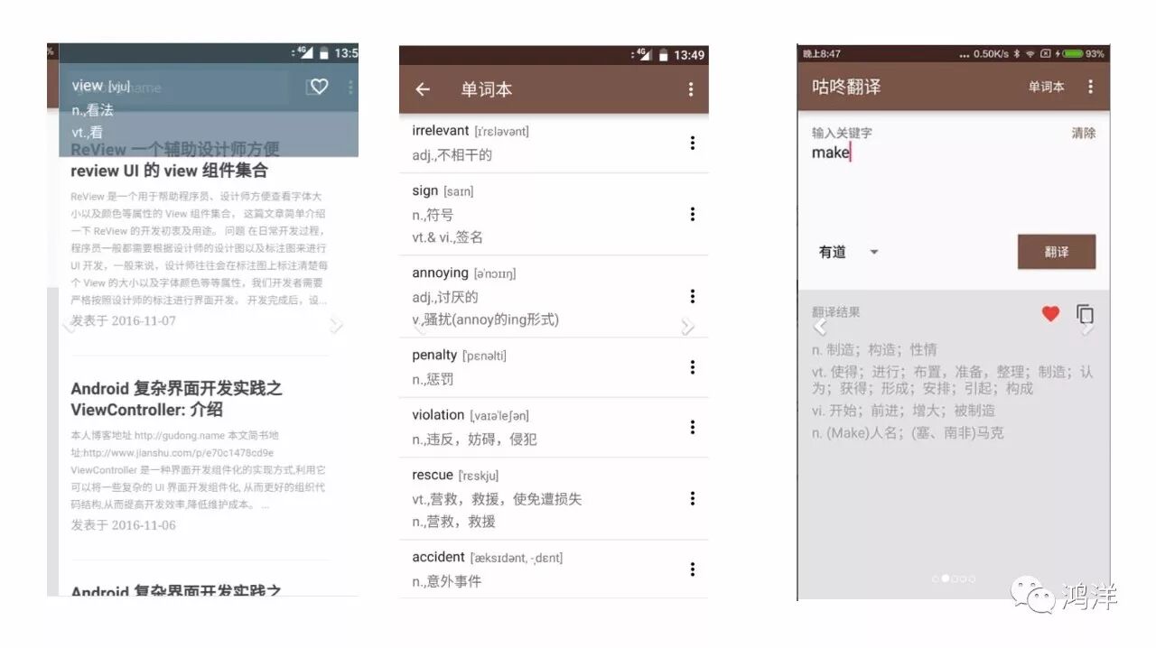 如果你经常在手机上阅读文章,偶尔遇到一些英文单词需要翻译,你只要在当前页面“划词”即可实现翻译,该app非常实用,当然里面也包含一些技术值得你花时间去学习:
