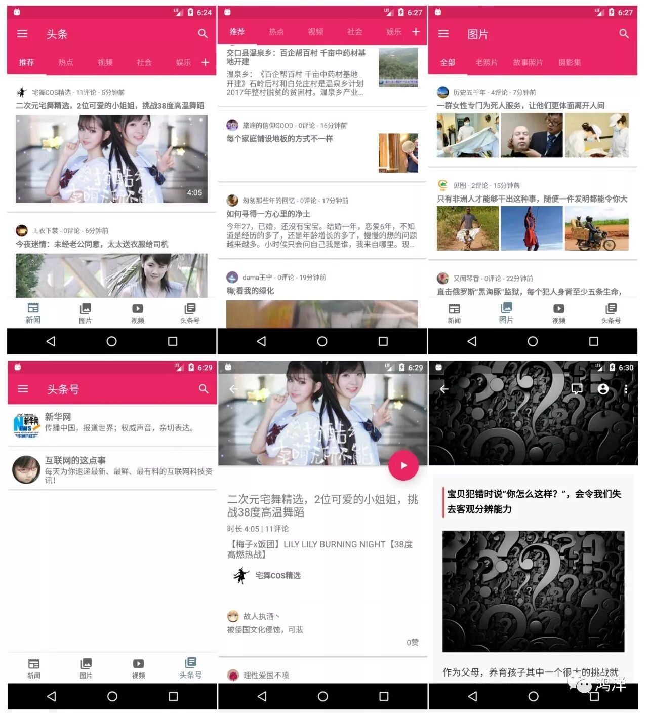 你可以认为这是一个遵循Material Design风格的第三方的头条客户端,功能已经相当完备,, 聚合了新闻/段子/图片/视频/头条号内容, 没有广告, 仅仅只有存粹的阅读, 不断完善中, 采用 MVP + RxJava + Retrofit 架构的项目~