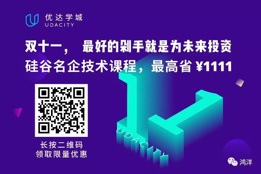 Udacity 最近双十一活动,硅谷的技术课程最高可减1111元,感兴趣的朋友可以扫下方二维码领取优惠~
