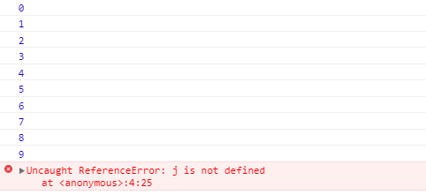 //j只在这个for循环有效,如果在循环外调用就会报错
