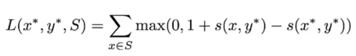 是正例所得的分数,意思是若正例的分数比负例大于1则损失函数为0,否则会产生损失。