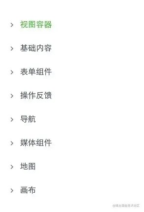小程序的组件其实也是框架的一部分,主要负责UI的呈现,也自带了一些功能与微信风格的样式。基本上移动端常用的组件都包含在内,比如表单组件、导航组件、媒体组件等。下面便是小程序提供的八类组件: