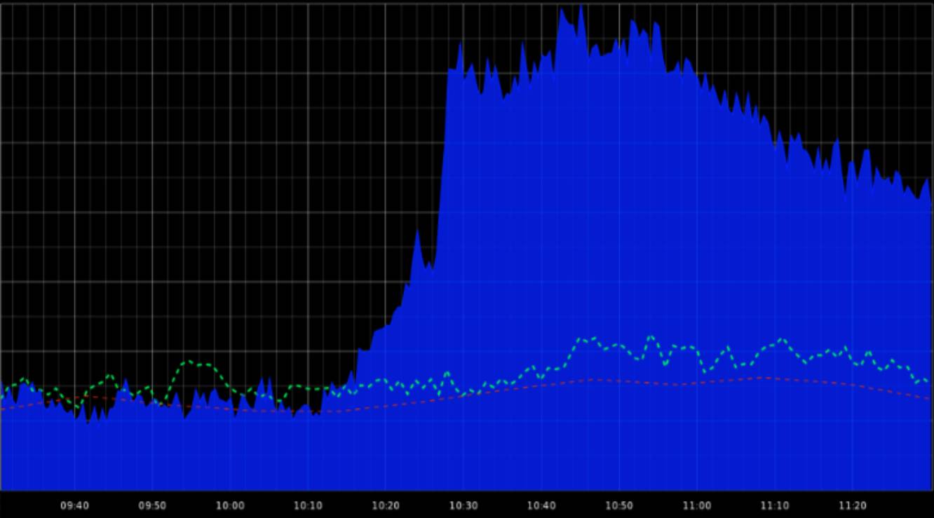 微博作为当今中文社交媒体的第一品牌,拥有超过 3.6 亿的月活用户,也是当前社会热点事件传播的最主要平台。热点事件的发生具有不可预测性和突发性,以 9 月 26 日上午“谢娜宣布怀孕”事件为例,从图 1 可以看出微博评论的流量在短短 10 分钟内迅速上涨,并在 20 分钟后达到了日常晚高峰的 2 倍之多。可见,为了应对突发事件带来的流量冲击,确保线上服务的稳定性,能够进行随时随地的快速弹性扩容十分重要。