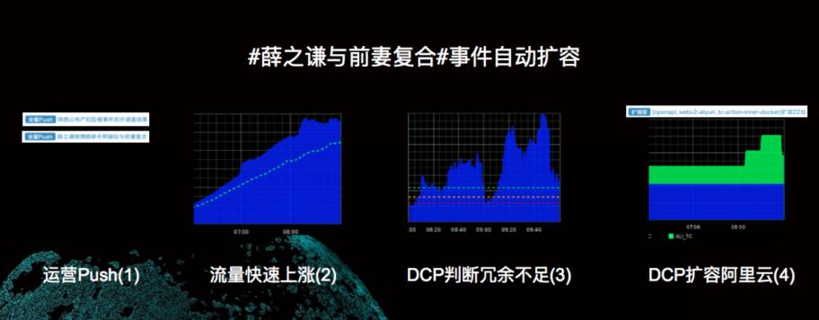下图展示了在 # 薛之谦与前期复合 # 事件中,智能触发自动扩缩容的实际效果。