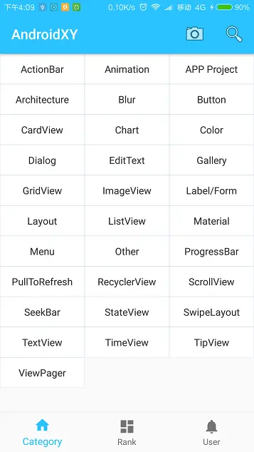 包括的分类:Button, CardView, EditText, ImageView, GalleryView, Material, SwpieLayout, TextView, Chart, Callendar 等等