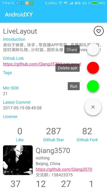 作为Android开发者,我们会经常去Github上搜索Android开源组件、UI等等。但这些组件都需要自己编译后生成apk才可以安装运行、体验。为此,我们为了减少这一个时间成本,开发了一个网站和app,专门收集大量的Android优秀开源组件,大家可以直接下载运行体验demo,能够帮助大家快速找到合适的组件。