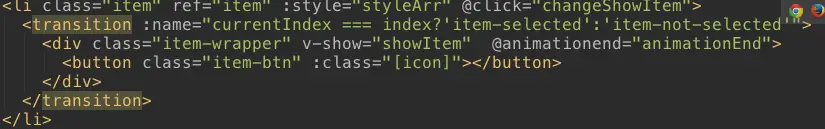 这里触发动画使用vue提供transition ,当元素的v-show为false时,也就是display为none时,触发动画。