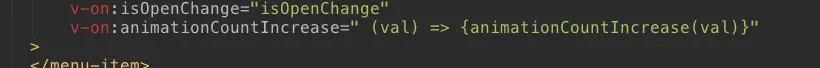 我在menu组件里使用v-on监听animationEnd事件,item自己的动画执行后,通过$emit触发animationEnd事件,通知menu的动画计数count++,当count达到总的项目数的时候,menu进行关闭.