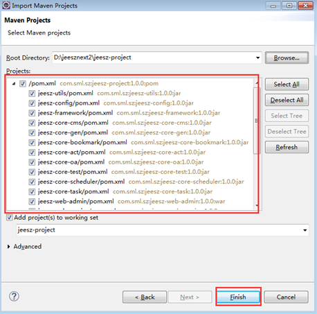选择你本地的maven项目(请选中jeesz-project根目录),点击确定