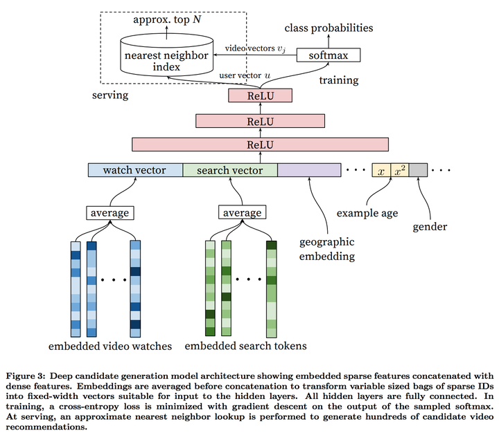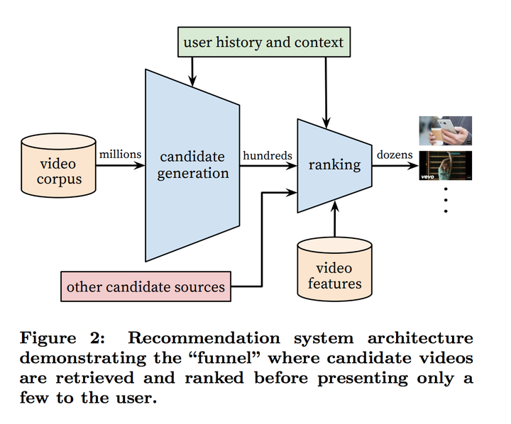 最近做了太多的系统的论文,今天我们来看一看一个2016的ML相关的论文:Deep Neural Networks for YouTube Recommendations static.googleusercontent.com/media/resea… 。YouTube在2016年公布的基于deep learning来做的推荐算法,非常地新颖,也给大家指明了一个方向怎么样做这种类型的推荐算法。