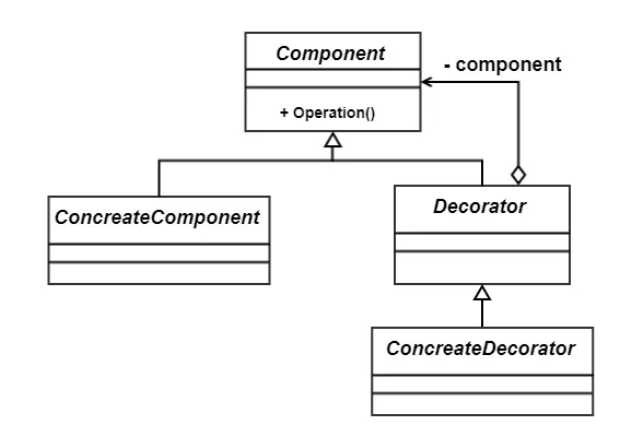 一般是一个抽象类,实现Component接口或者抽象方法,它里面可不一定有抽象的方法呀,在它的属性里必然有一个private变量指向Component抽象构件(如果具体装饰角色只有一个,这个可以省略)。