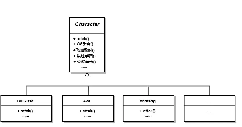 (2)直接抽象一个角色类,里面包含了每个角色的技能。