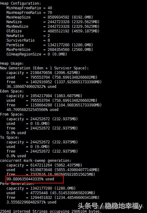 看见年老区 使用率 100%,同时执行了12304次 FullGC