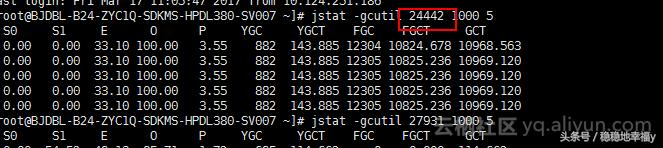 2) 继续执行命令:jsat –gcutil 24442 1000 5,
