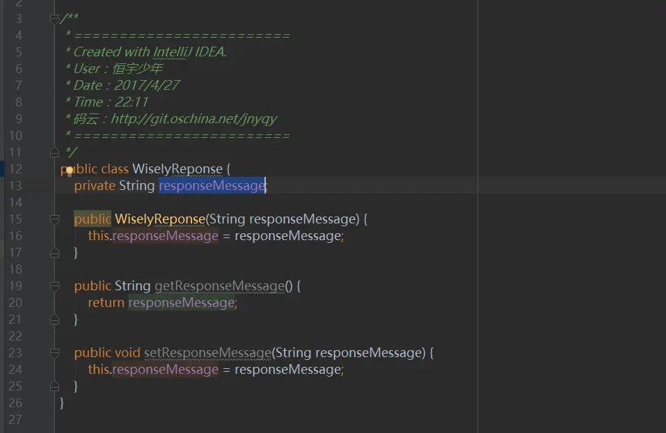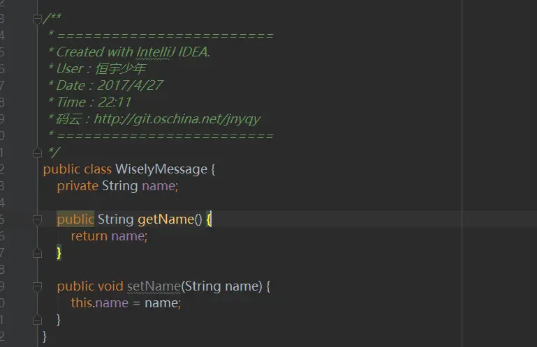 我们创建一个简单的WiselyMessage实体,用于浏览器向服务端发送消息参数,如下图3所示: