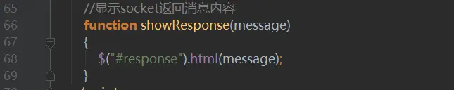 通过注册/topic/getReponse路径来回去服务端向浏览器端的请求数据内容,并且调用showResponse方法显示在页面中,showResponse方法如下图9所示: