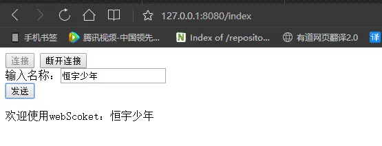 可以看到我们成功的开启了WebSocket通道,开启通道后显示了对应的输入内容,我们来尝试输入一个名称点击发送查看界面输出内容如下图16所示: