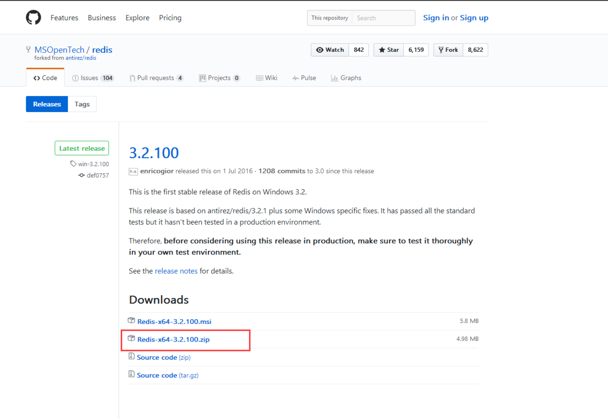 我们直接访问github网址:github.com/MSOpenTech/…,下载最新的windows X64版本的压缩包,如下图1所示: